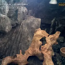Das Terrarium hat eine Größe von 120*60*60 cm. Vorne rechts ist der Eingang zu einer Feuchtbox zu sehen. Darin befindet sich feuchte Kokoserde. Die Geckos gehen gerne dorthin, um sich auf ihre Häutung vorzubereiten oder ihre Eier zu legen.