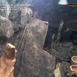 El terrario tiene un tamaño de 120*60*60 cm. En la parte delantera derecha puedes ver la entrada a una caja húmeda. En el interior hay tierra de coco húmeda. A los geckos les gusta ir allí para prepararse para la muda o para poner sus huevos.